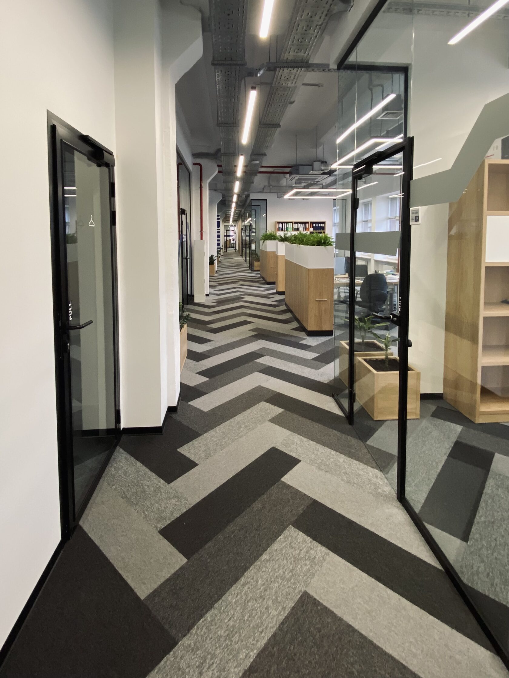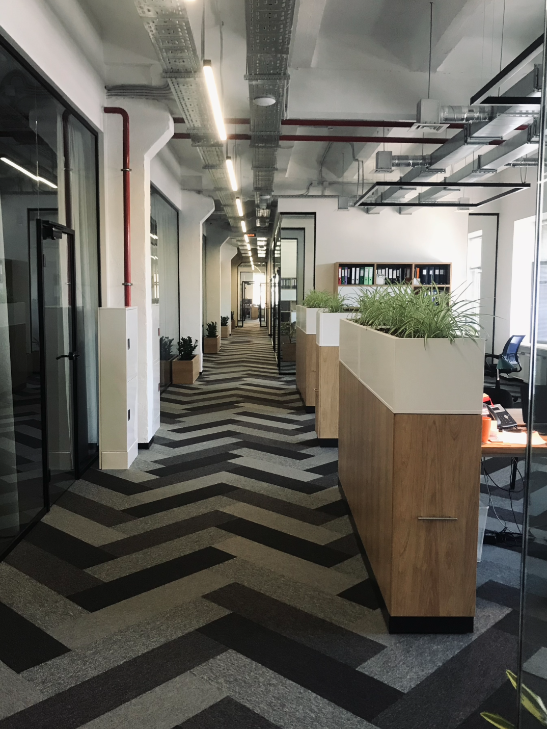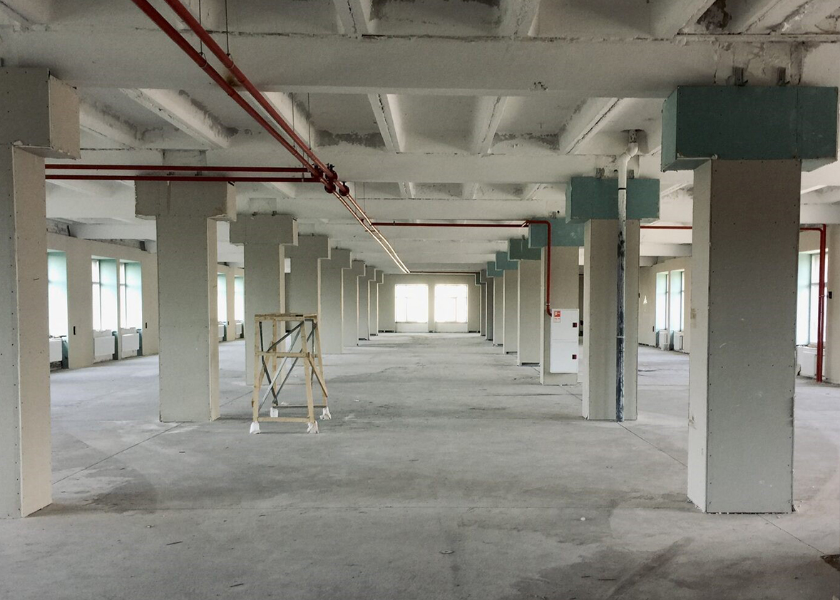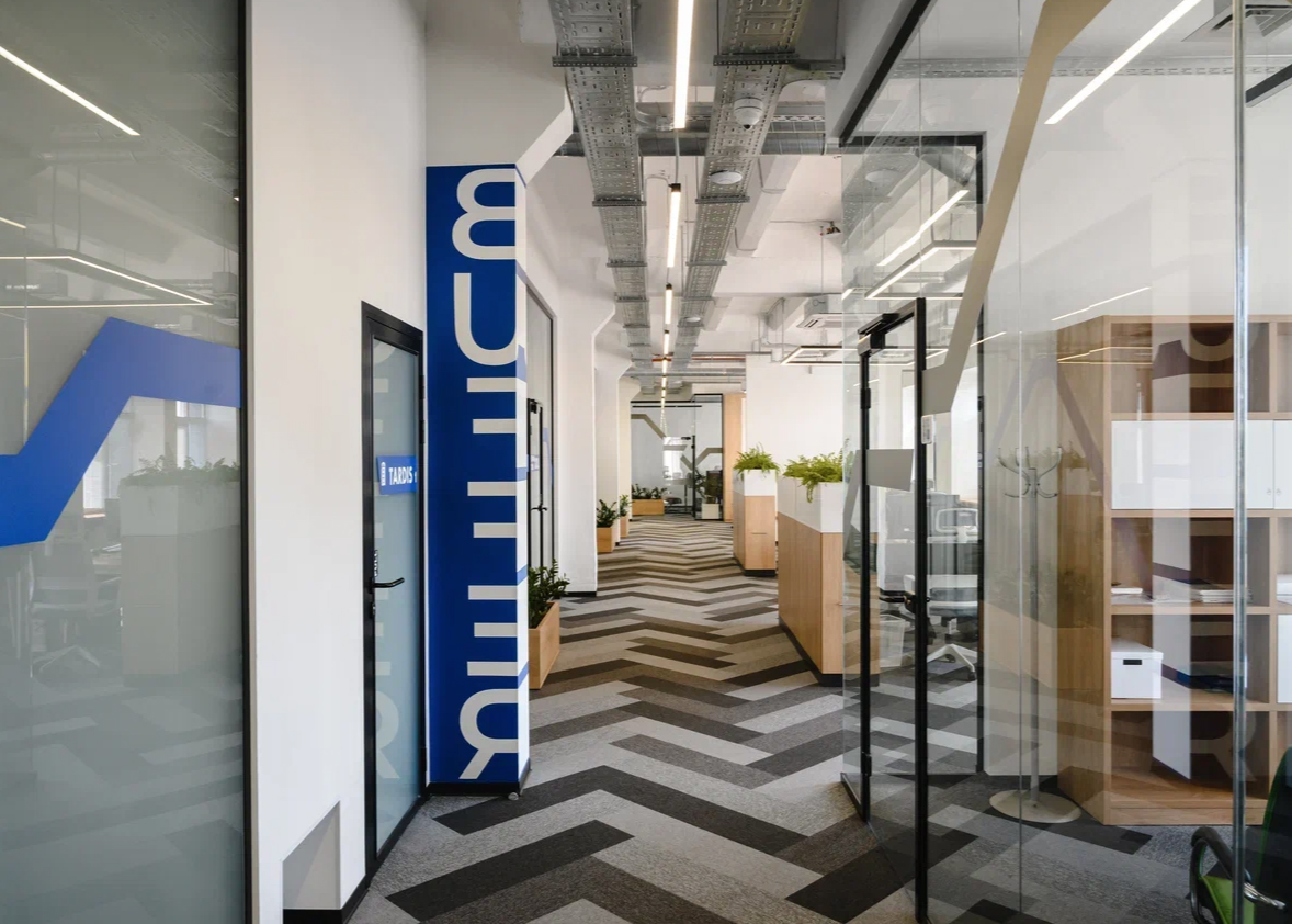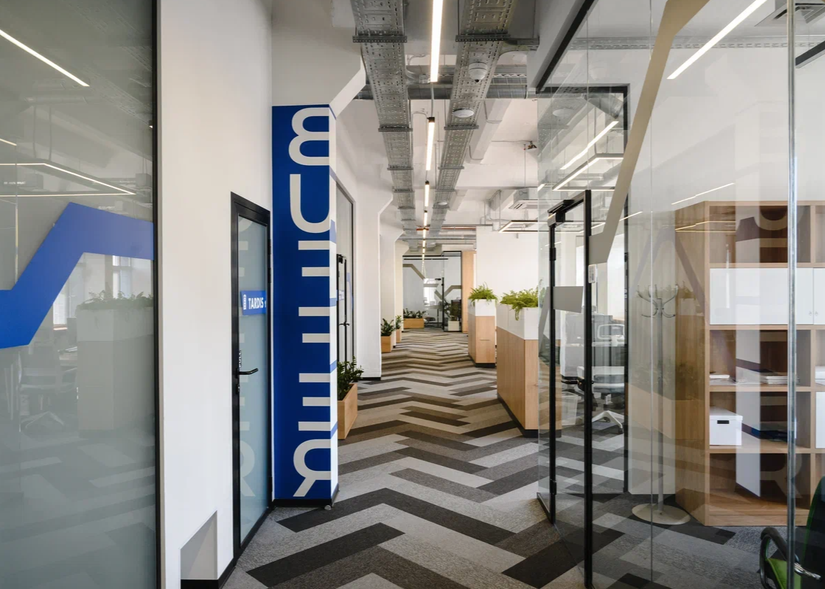 Перед командой стояла задача разместить на 1200м кв бывшего производства светотехнической фабрики офис из 20 отделов, так чтобы связь между ними была неприрывная.