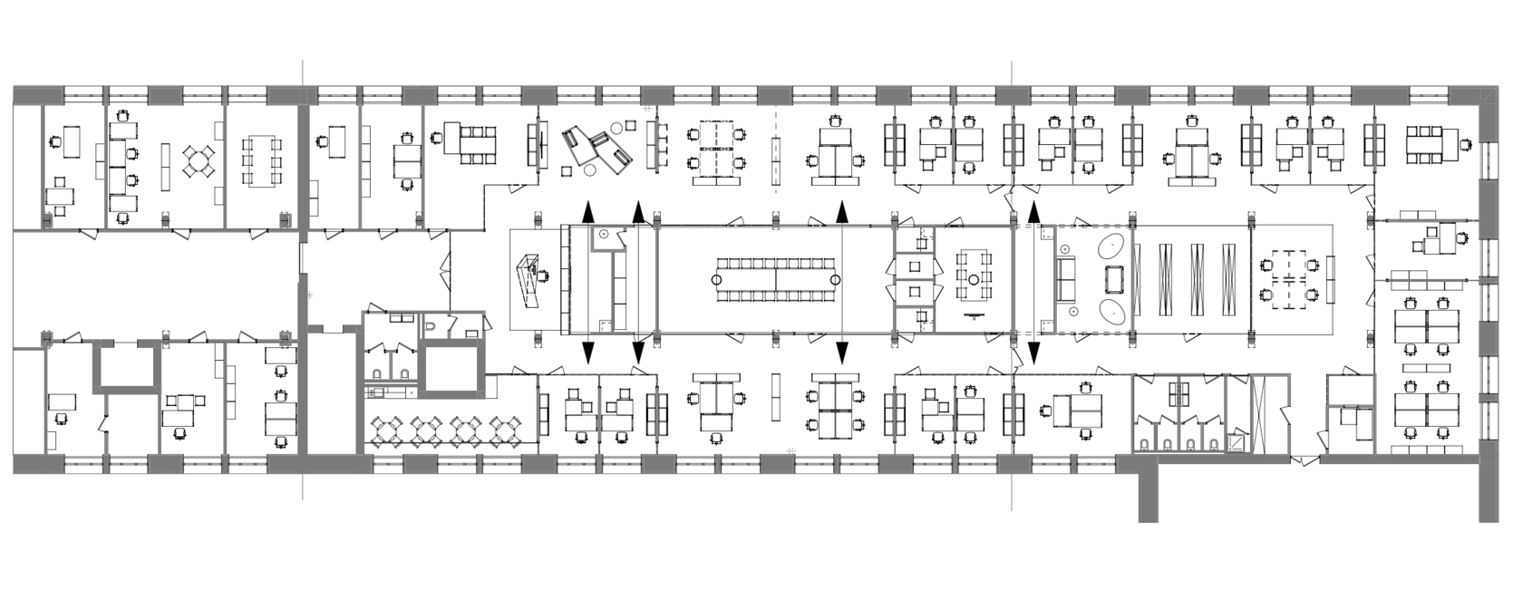 Помещения должно было включать в себя и офисные закрытые ячейки и openspeace пространство. А так же переговорные, комнату отдыха, архивы.
