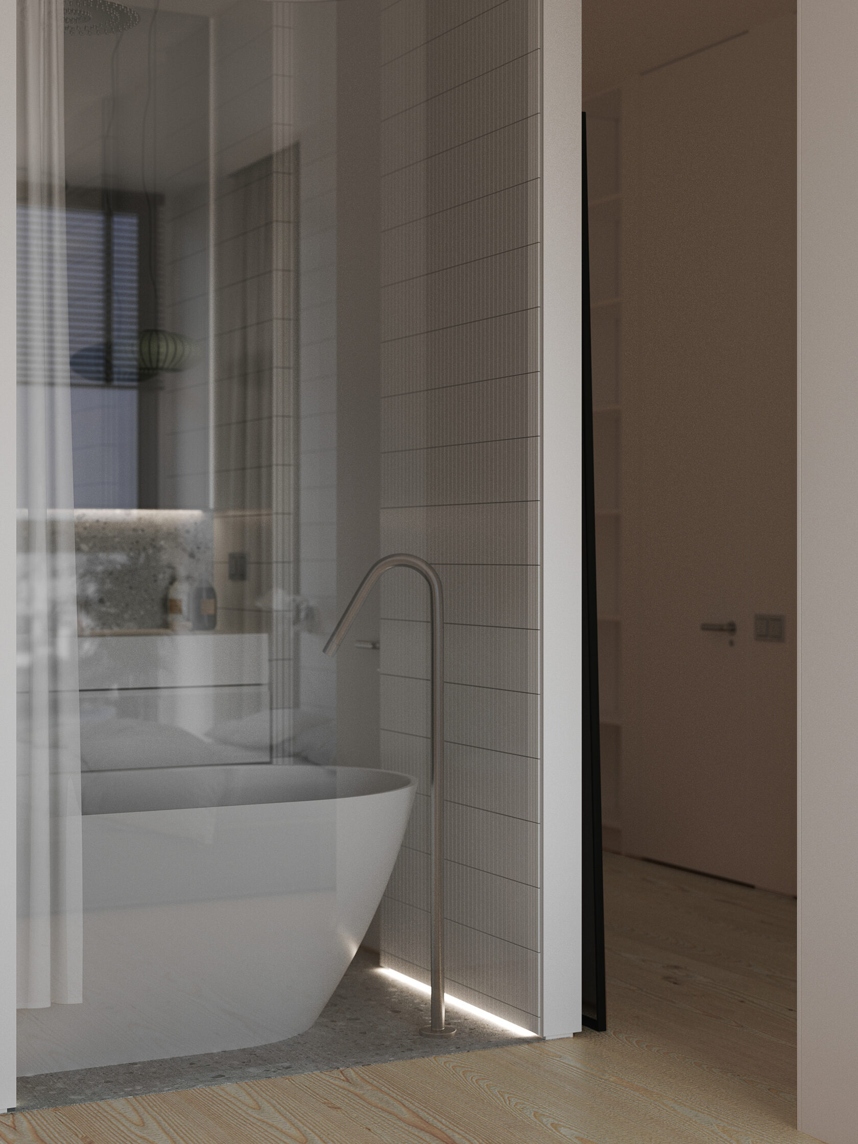 Напольный излив Bongio напротив окна добавляет особого эстетизма
